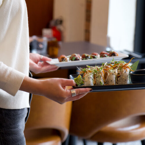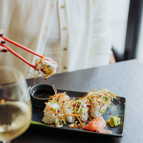torched beef & sockeye salmon, oshi sauce, sweet soy glaze, cracked pepper, black truffle salt, wasabi cress
